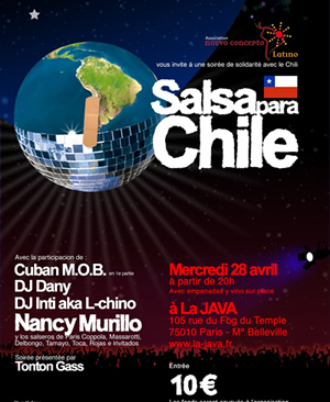 Accueil > Francochiliens 2010 > Nouvelles > ¡Chili con Salsa...solidaire à Paris !