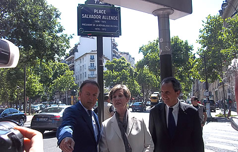 Sucesora de su padre en la presidencia del senado de Chile, Isabel Allende fue recibida por su par francés. Juntos rindieron, en el Senado y en la Place Salvador Allende, sendos homenajes al padre de la presidenta de la cámara alta. Reportaje fotográfico y audio.