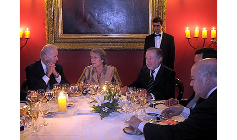 29 mars 2009"Une heure pour la planète" oblige. Samedi 28 mars au soir la présidente chilienne Michelle Bachelet et le vice-président américain Joe Biden ont "diné aux chandelles" aux Palais de la Moneda.